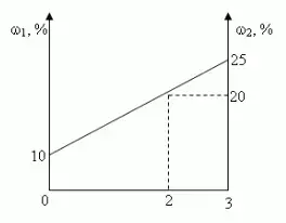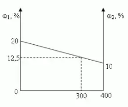 Построим график зависимости массовой доли растворенного вещества от массы смешанных растворов. На одной из осей ординат откладывают точку, соответствующую массовой доли