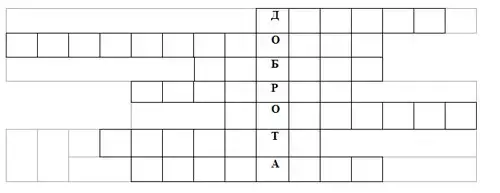 Ведущий. Молодцы! И в конце нашего занятия предлагаю разгадать кроссворд. В его основе лежит слово, которое помогает нам жить в мире и согласии, без ссор и конфликтов, -