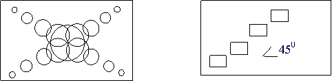 Семейство окружностей, радиусы которых изменяются на величину шага цикла (STEP 10). Координата центра изменяется по оси ОХ так же на величину шага (STEP 10).