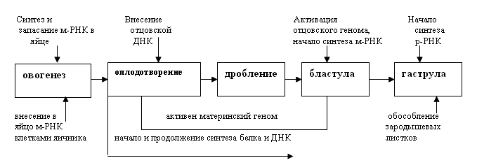 Схема 1. Активность генов в ходе эмбриогенеза.
