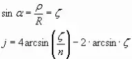 видно, что для определения j , необходимо знать угол падения луча на каплю и показатель преломления.