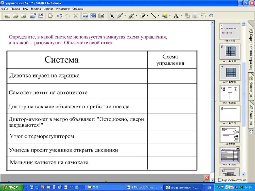 Страница 3 <Рисунок 4> . Бывают разновидности: разомкнутые и замкнутые схемы управления. Это тема нашего урока. Запишите ее в тетрадях. В чем же