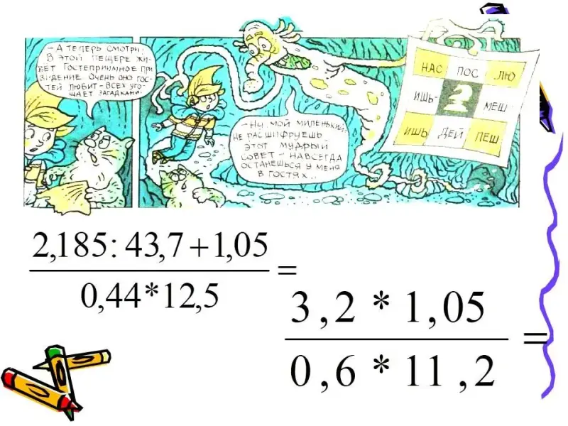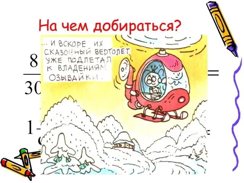 Совершим небольшое путешествие в сказку. Здесь нам потребуются наши знания и умения; делить и умножать дроби, решать уравнения, задачи, пользоваться компьютером (калькулятором), чтобы выйти из трудных ситуаций и помочь сказочным героям.