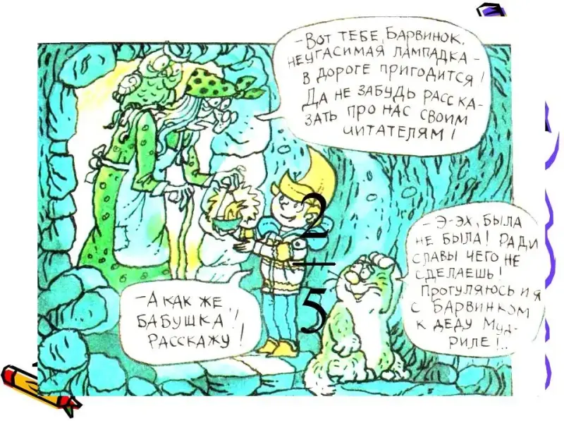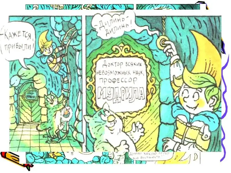 Учитель: Решили. За моей пещерой и живет гном Мудрила. Добрались до Мудрилы. А он нас уже встречает.