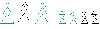 - Сколько елочек больших? (3).Обозначим 3 красными треугольниками.