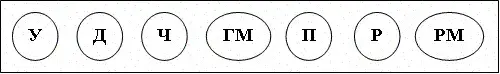 (Обозначения: У - устная работа с классом; Д - работа у доски; Ч - работа по готовым чертежам; ГМ - устная работа с геометрическим материалом; П - работа с пирамидой; Р - разгадывание ребусов; РМ - работа с раздаточным материалом)