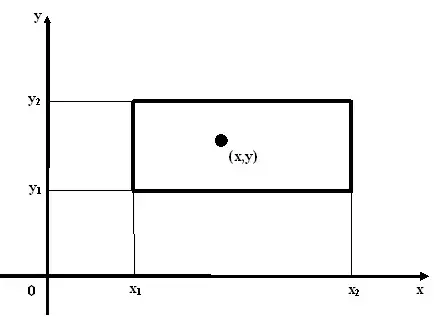Если точка с координатами (x,y) лежит внутри прямоугольника или на его границе, то должны выполняться следующие условия: