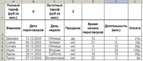 Задание. Дополнить таблицу столбцами «Скидка» и «Оплата со скидкой». Скидка в размере 8% предоставляется, если длительность разговора в будний день составила 30 минут.