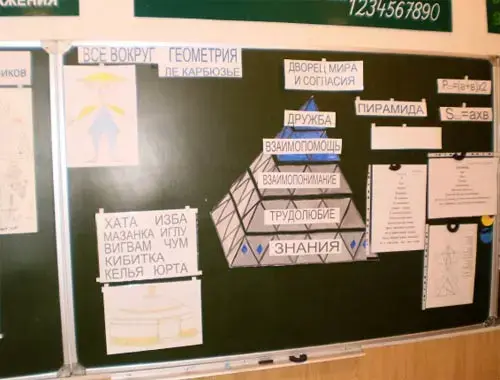 - Вот мы и достроили наш общий дом. И помогла нам в этом ваша дружная работа (на боковую часть доски прикрепить 5/5 пирамиды со словом "ДРУЖБА")