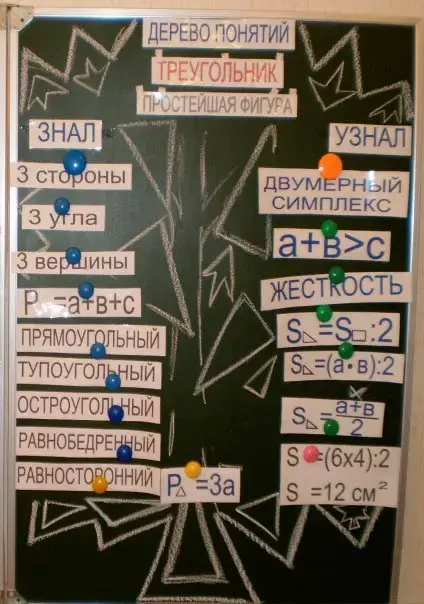 8) - Сейчас вам предстоит построить диаграмму Венна и отразить в ней сходство и различия между двумя геометрическими фигурами: треугольником и пирамидой. Признаки треугольника вам хорошо известны. В качестве подсказки можете использовать ДЕРЕВО ПОНЯТИЙ. А чтобы легче было найти признаки пирамиды, воспользуйтесь ее моделями.