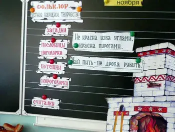 - Очень много пословиц и поговорок сложил русский народ. А вот домовёнок, который поселился сегодня у нас, замазал золой окончания пословиц. Помогите мне восстановить их на нашей стене.
