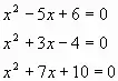 5) Решите приведенные квадратные уравнения методом подбора корней: