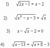 1) Какие из следующих уравнений являются иррациональными: