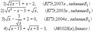 Какие из предложенных иррациональных уравнений вы умеете решать?