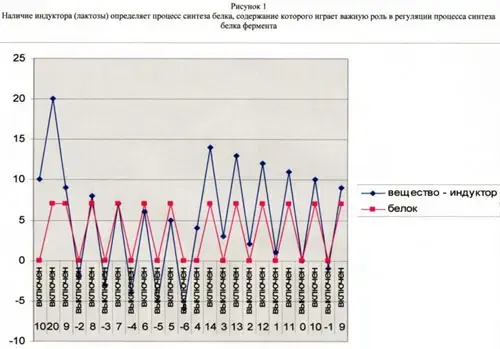 Наличие индуктора (лактозы) определяет процесс синтеза белка, содержание которого играет важную роль в регуляции механизма синтеза белка фермента