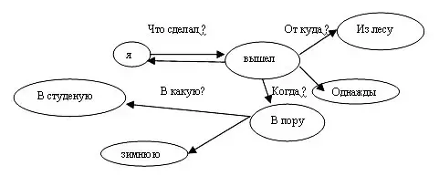 Пример. Представьте в виде графа связи в следующем предложении: Однажды в студеную зимнюю пору я из лесу вышел.