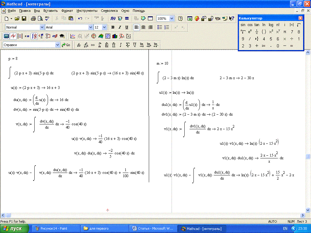 При составлении многовариантных упражнений можно построить все задания так, чтобы все числовые коэффициенты зависели от некоторых величин, параметров. Это с успехом применяется уже много лет при составлении контрольных работ для студентов заочных отделений институтов и техникумов. Пакет Mathcad позволяет преподавателю не только составить эти задания, но и вывести (более или менее подробно) на экран компьютера их решение. Всё это позволит преподавателю сэкономить время на составление заданий для контрольных, проверочных, практических работ и, главное, время на решение этих однотипных заданий. Имеющиеся у преподавателя шаблоны позволят в короткие сроки составить новые варианты заданий. Исчезнут и кипы бумаг с решёнными вариантами заданий, преподаватель сможет проверять все работы, сидя перед экраном монитора. Если урок проводится в компьютерном классе, то можно организовать работу по самопроверке или взаимопроверке студентами выполненных работ что, несомненно, повысит интерес к математике и позволит студенту критически оценивать результаты своей работы.