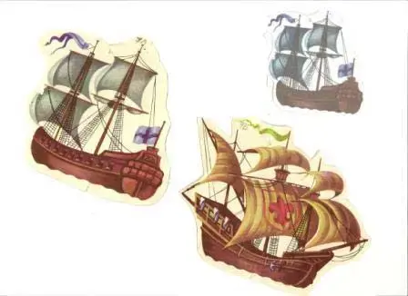 - карта "Великие географические открытия" и изображения каравелл для 3х команд,