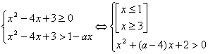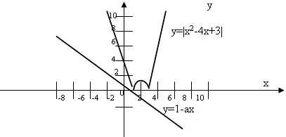 y=1-ax - касательная к y=|x2-4x+3|. Значит, чтобы неравенство