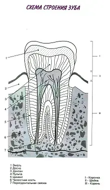 2) Работа по схеме строения зуба.
