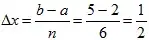 Разобьём отрезок [a, b] на несколько (например, на 6) равных частей. Тогда а = 0, b = 3 , ![]()