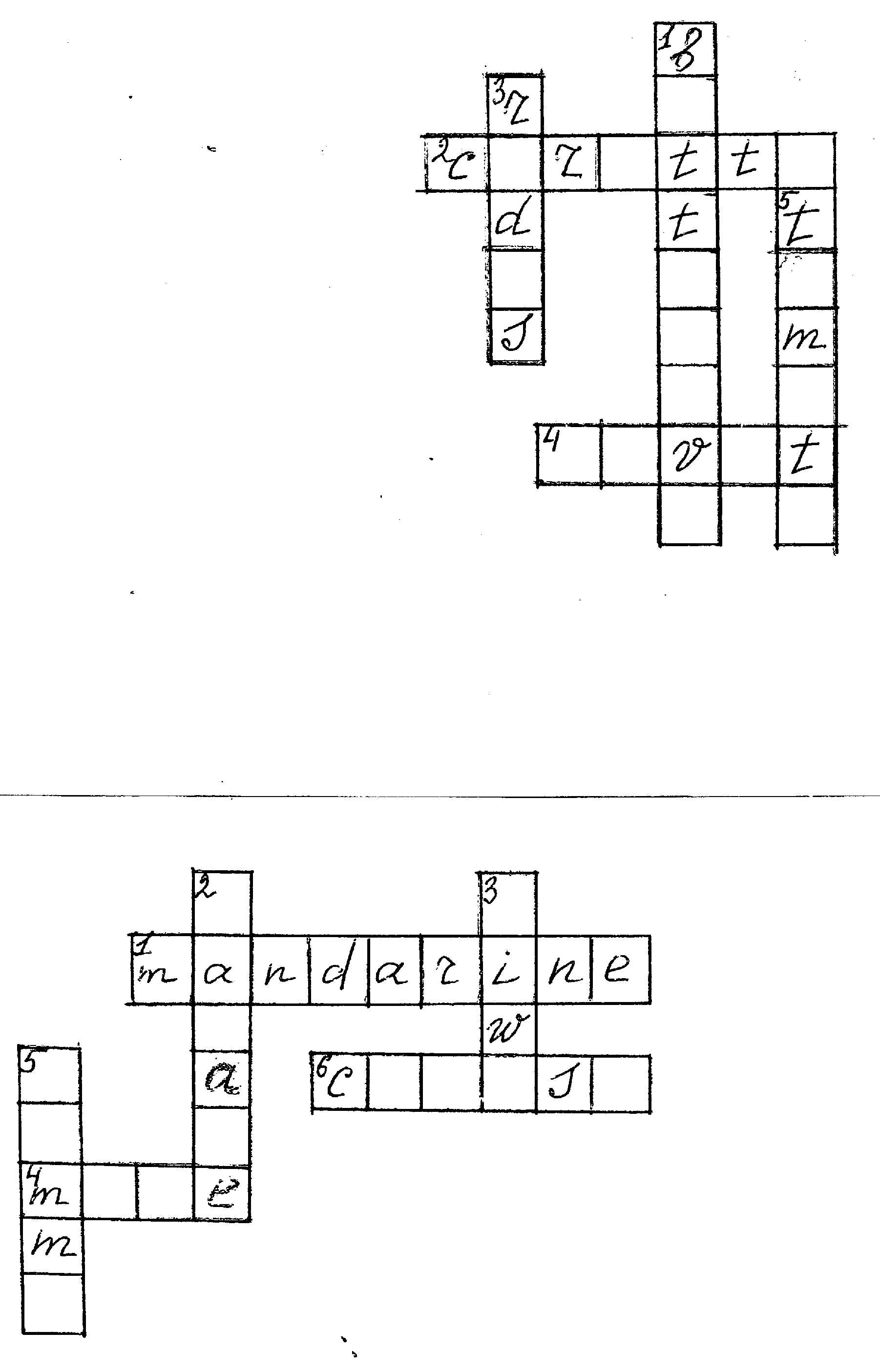 1. Решение кроссвордов.(1-й о фруктах, 2-й об овощах).