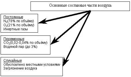 Таким образом, состав воздуха можно представить схемой: