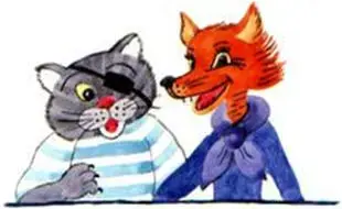 Все обошлось как нельзя лучше. Сытый Буратино с пятью золотыми монетами продолжил путь.