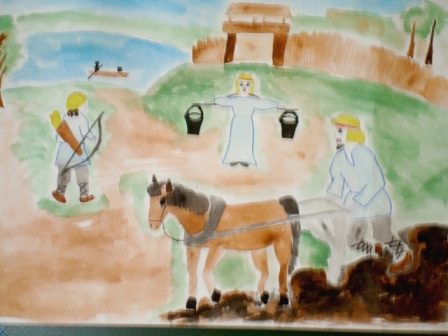 - Трудолюбием Наши предки жили все вместе племенами - поодиночке они бы погибли. Мужчины охотились, женщины собирали в лесу съедобные травы, ягоды, грибы. Летом работали в поле, а в долгие зимние дни и вечера пряли, ткали, делали глиняную и деревянную посуду, игрушки для ребят. <Рисунок 1>