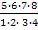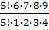 1) 1, 2, 5, 6, 7, 8; 2) 0, 2, 5, 6, 7, 8?