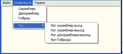 - "Шифрация" - включает подпункты: скремблер, дескремблер, "гибрид" и логи,(которые можно по желанию зафиксировать "скрепочкой".)
