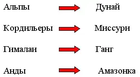 Альпы Амазонка Кордильеры Дунай Гималаи Миссури Анды Ганг