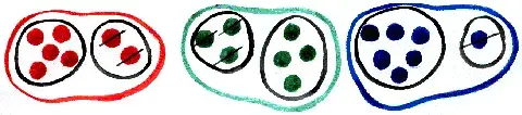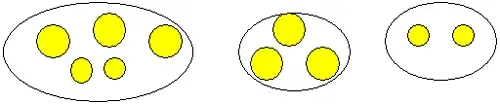 - Положите в первый большой мешок 3 большие монеты ( 3 желтых круга) и 2 маленькие монеты ( 2 маленьких желтых круга)