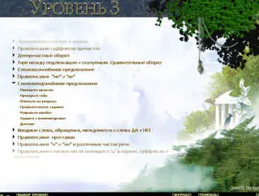 Использование электронных учебников на уроках русского языка предполагает создание благоприятных условий не только для коллективных занятий, но главное - для самостоятельной работы каждому учащемуся, усвоения учебного материала в удобном для каждого ученика темпе, предоставление возможностей для проявления способностей, интереса к учебе. Поэтому одни ученики (те, кто посильнее) могут работать в 4-ом уровне, другие - в 3-ем, в разделе "сложносочиненное предложение (ССП)" (Слайд №2) электронного репетитора-тренажера. Раздел "ССП" включает в себя 7 заданий (Слайд №3).