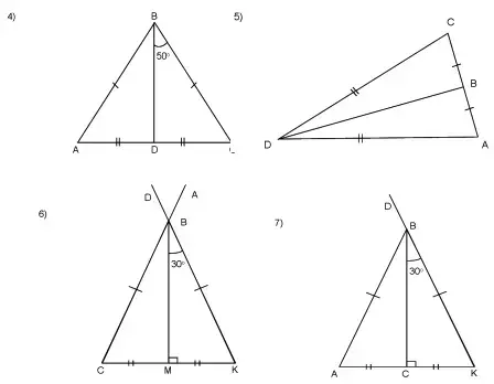 4. Решение задач на готовых чертежах с целью повторения первых двух признаков равенства треугольников