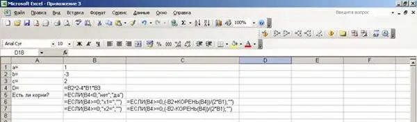 любое квадратное уравнение, изменив значения коэффициентов квадратного уравнения. Электронная таблица мгновенно найдет корни.
