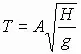 Пример №5. Найти формулу для определения времени падения тела с некоторой высоты без начальной скорости. Ясно, что если не учитывать сопротивление воздуха, то это время может зависеть только от самой высоты H и от ускорения свободного падения g. Обозначая безразмерный коэффициент через А, можем записать: