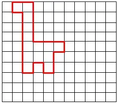 Поставили точку: вверх 4 клетки, влево 1, вверх 1, вправо 2, вниз 4, вправо 3, вниз 1, влево 1, вниз 2, влево 1, вверх 1, влево 1, вниз 1, влево 1, вверх 2.