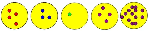 Учащимся раздаются индивидуальные карточки со схемой множеств, на которые они наносят точки-элементы каждого множества. Один из учащихся рисует данные элементы на доске.