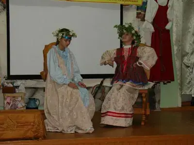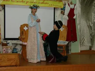 Задачи: изучение особенностей русского мифа, сказочного и песенного фольклора (запевки дружков и подружек невесты, плачи-причитания невесты, застольные свадебные песни), русских национальных обрядовых традиций - Масленицы, сватовства, выкупа невесты и свадьбы; историю происхождения и значения трудных слов в тексте пьесы А.Н.Островского - старославянизмов, архаизмов, историзмов, русских пословиц и поговорок, вошедших в драму; подбор музыкального сопровождения к спектаклю.