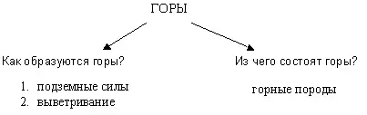 - Как же образуются горы? Из чего состоят горы? (на доске появляются вопросы)
