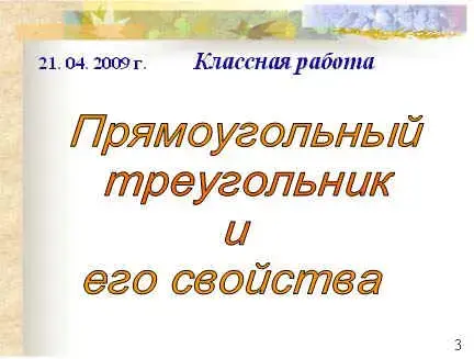 И тема урока: "Прямоугольный треугольник и его cвойства" А теперь определим цели урока