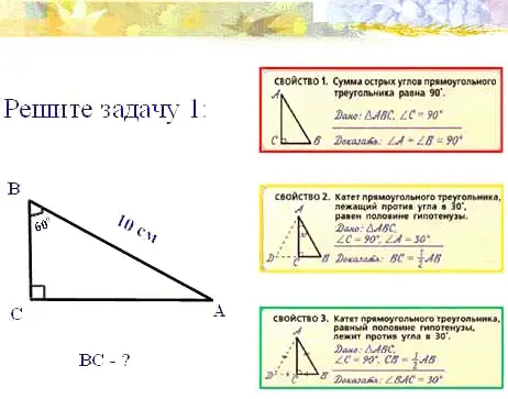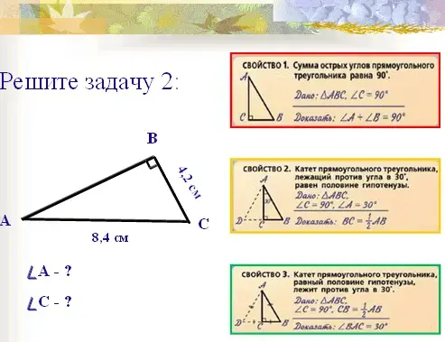 2) Найти другие примеры применения свойств прямоугольного треугольника.