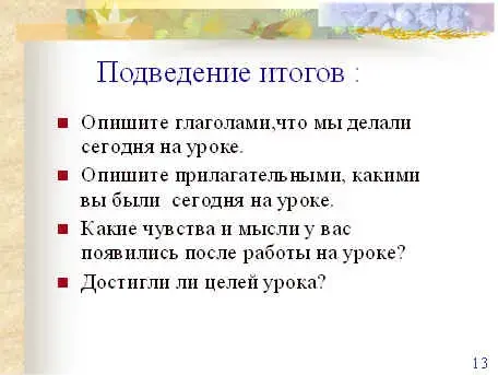 - Опишите прилагательными, какими вы были сегодня на уроке.