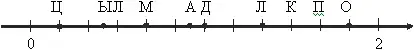 Каждой дроби соответствует определенная буква на координатном луче. Используя соответствие, учащиеся должны составить слово.