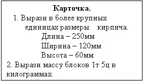 Один ученик получает карточку и работает у доски. Он рассчитывает размер кирпичей.
