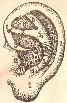 бодрости нашего организме с помощью ушной раковины. Но перед этим давайте еще раз взглянем на нее, и запомним основные биологически активные точки.