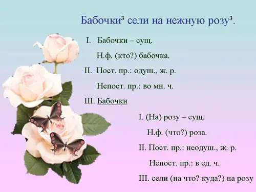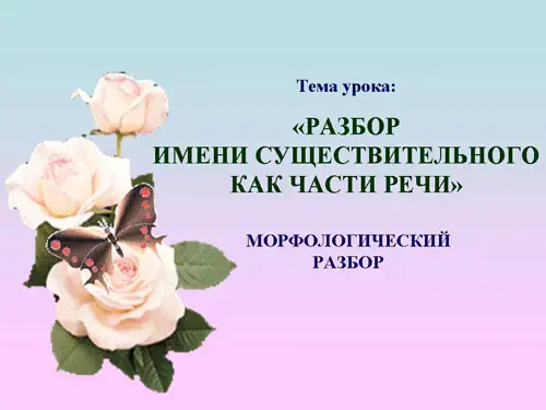 Цель: познакомить учащихся с морфологическим разбором имен существительных.