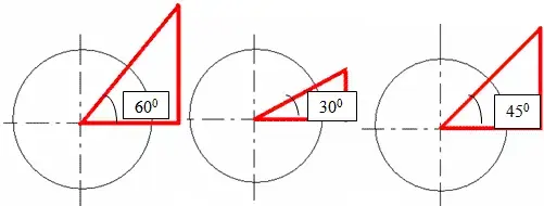 Для этого мы с вами можем использовать вот такой угольник с углами 90°, 60°, 30°
