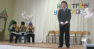 Действующие лица: Ведущий, Лешая-мама, трое ее детей: № 1, № 2, № 3, три гостя-ученика: гость1, гость 2, гость 3.